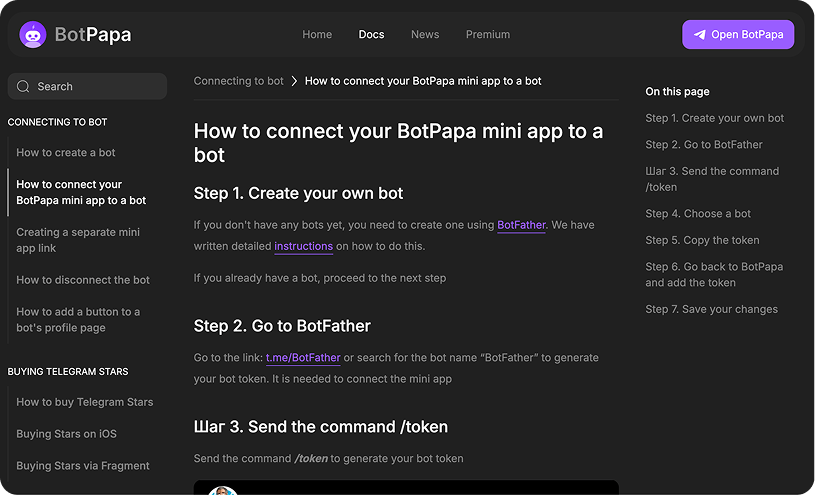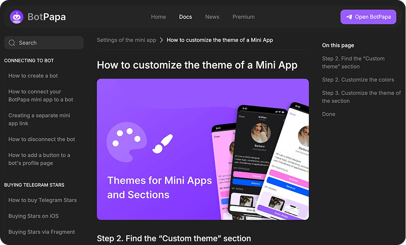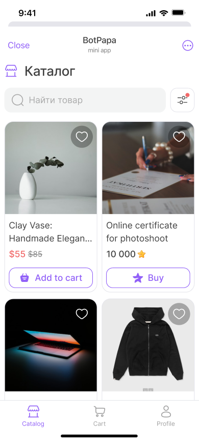 With the BotPapa builder, you can create catalogs, product showcases, lead forms, quizzes, service booking systems, online stores, multi-links, and portfolios inside Telegram.