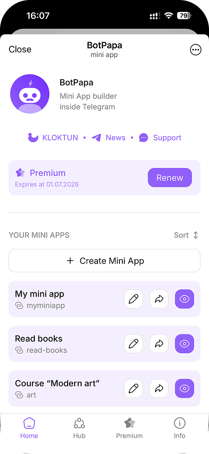 You can create a Telegram mini app directly inside Telegram — on your phone or computer. On average, launching a mini app takes 1–3 days, depending on the complexity of your project.